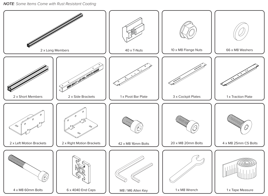 Introducing the Next Level Racing® Motion Adaptor Frame – the ultimate solution to transform your F-GT or Flight Simulator cockpit into a Motion Plus or Traction Plus compatible setup. With the ability to choose from one to two Motion Plus options or one Traction Plus Platform configuration, this adaptor frame provides unparalleled flexibility to suit your immersive experience preferences. The solid construction of 4mm carbon steel and black anodized aluminum extrusion ensures durability and strength.